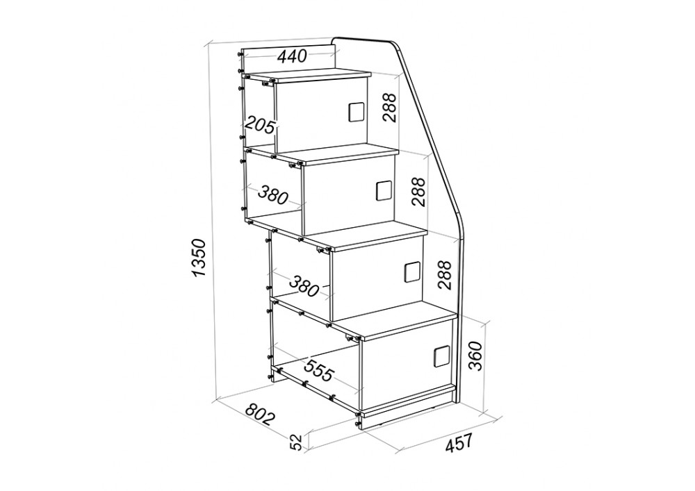 Лестница из 4 ступеней, сочетается со всеми кроватями серии A,B,C,D,E,F. Предназначена для боковой установки к кровати.